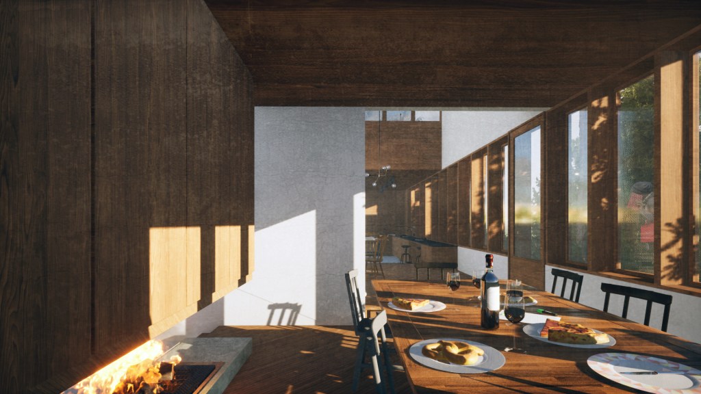 Cette maison se veut un dispositif d’exploration de son environnement et de soi-même dans une clarté spatiale résonnante.