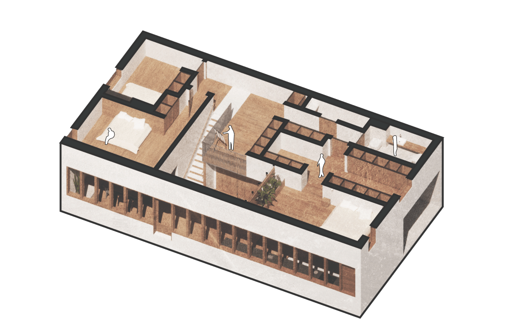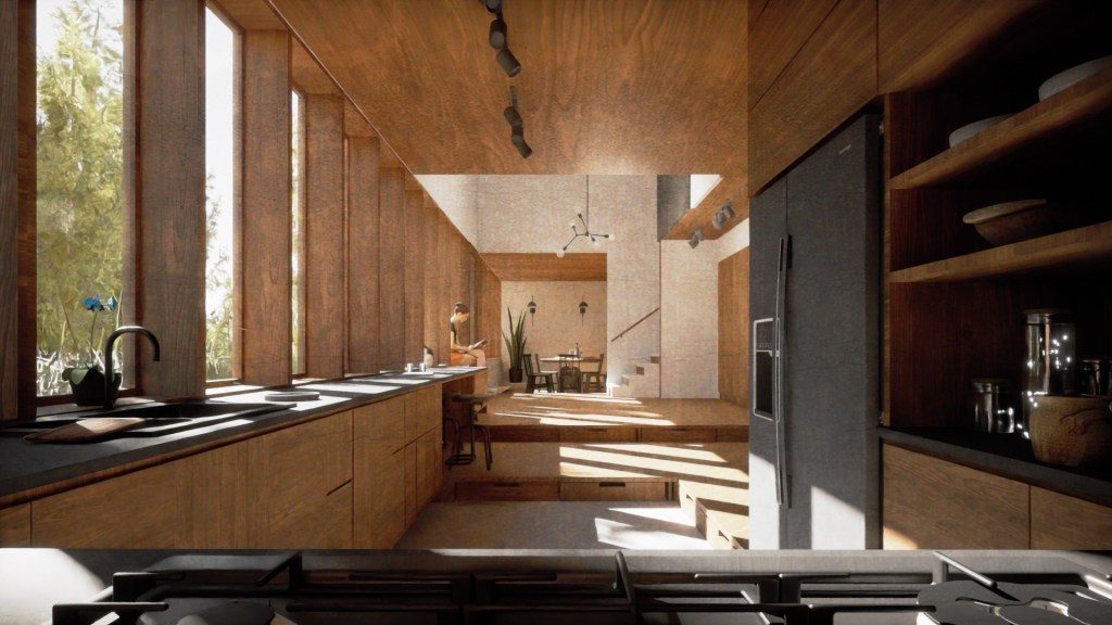 L’organisation spatiale du programme permet de diversifier les expériences dans une multitude de rituels du quotidien, tout en introduisant une intimité pour ses occupants sans pour autant sacrifier à la sensation de légèreté chaleureuse exacerbée par les matériaux et les proportions des lieux.
