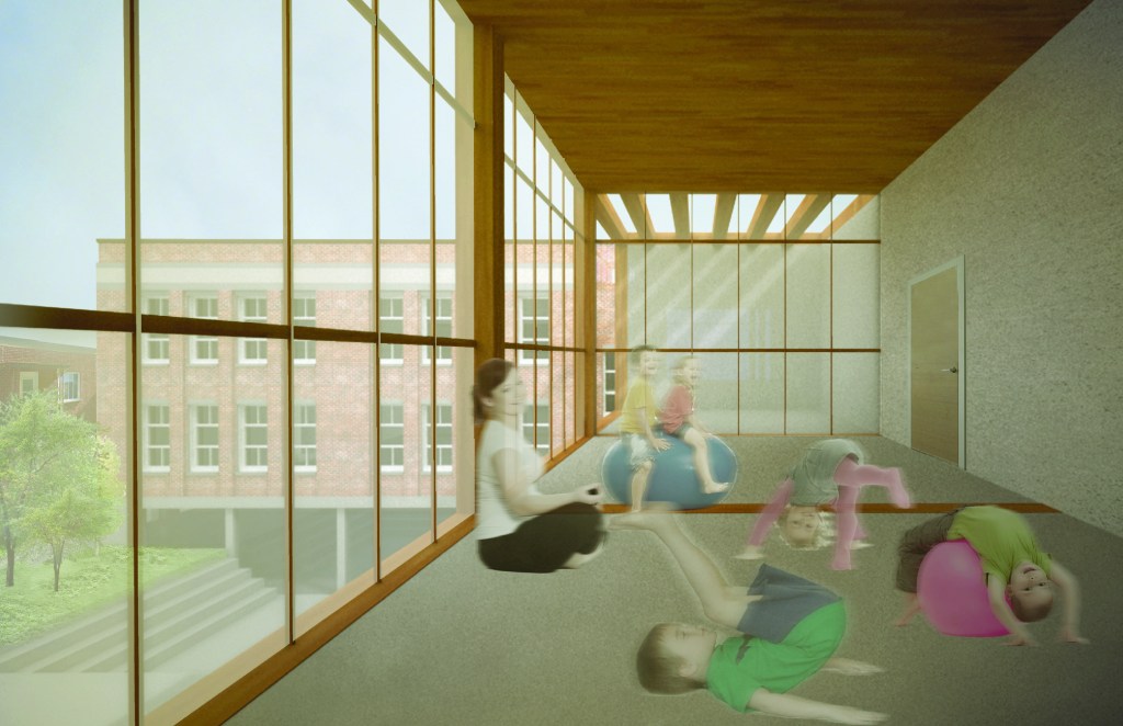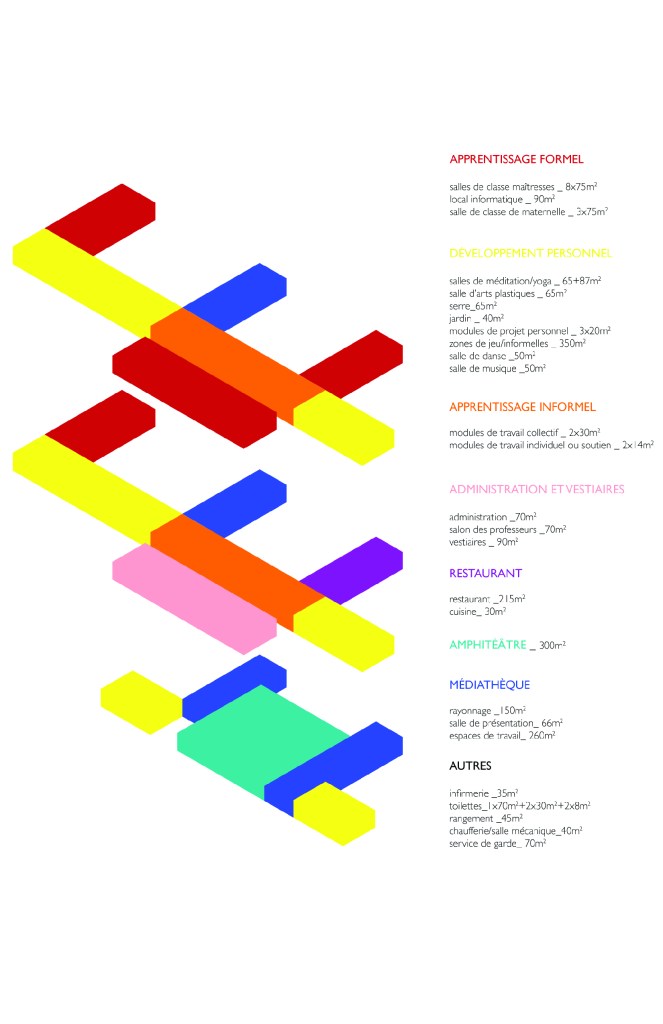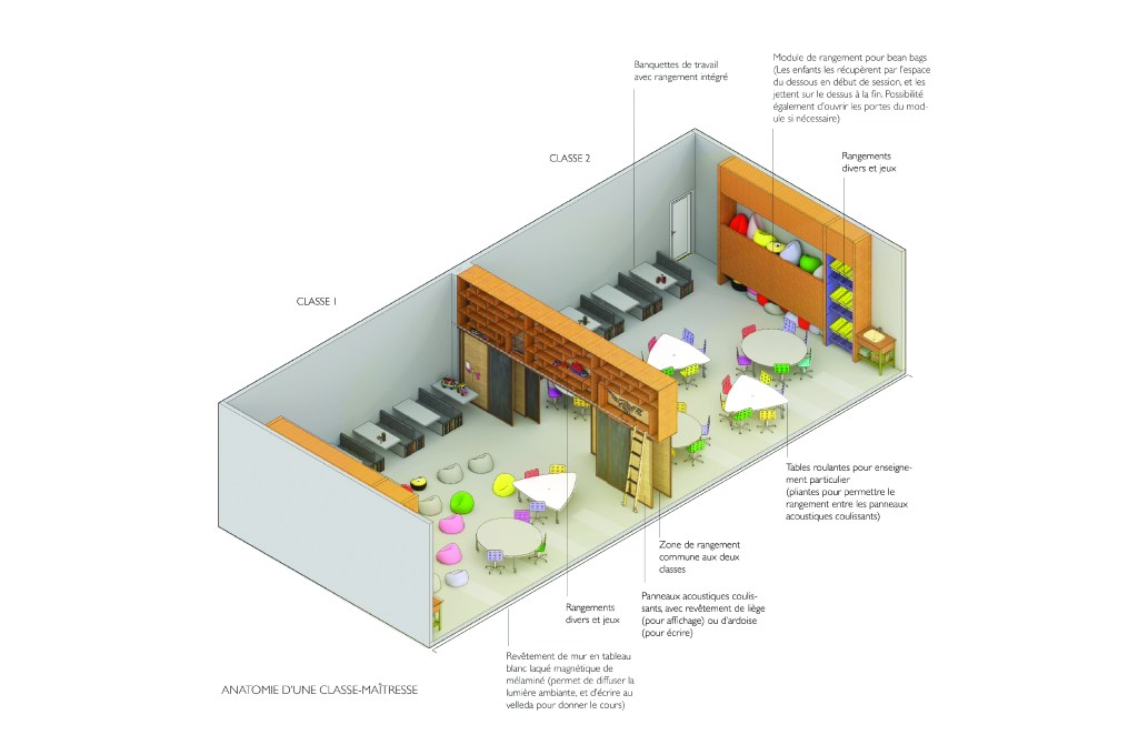 Tandis que la bande active vient traverser l’école pour dynamiser son enseignement par la mise en place d’nfrastructures eprmettant le développement personnel et le partage, les classes actuelles4 sont réaménagées fin de permettre un enseignment profesoral qui, bien que magistral, vise à permettre aux élèves de4 développer des moyens qui les am,ènent à s’éduqer eux mçemes aui travers d’Activités directement liées aux objectfs scolaires mais également au travers de l’atteinte d’objectifs personnels.